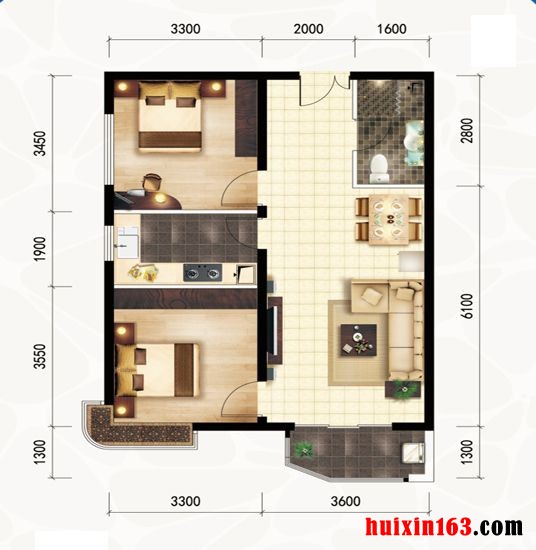 ![]() 水印康桥-78平米二居室现代简约效果图- 平面图 |