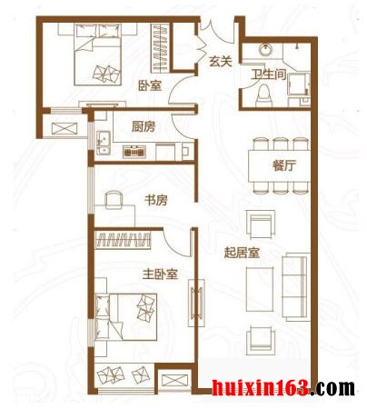 ![]() 湖湘林语-101平米二居室现代简约效果图- 平面图