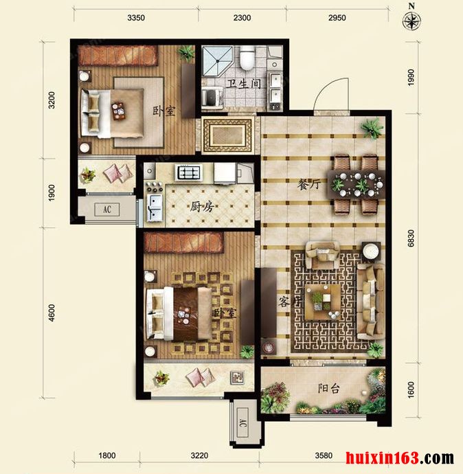 ![]() 霞光山庄.北苑-83平米二居室简欧风格效果图- 平面图 |