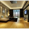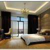 主卧的设计非常的简约大气,在顶面上设计了非常简约大方的吊顶结构,中央是一盏金黄色的水晶灯,周边局部吊顶结构的设计让空间看起来更高,更加的宽敞。在地面上铺设原木色的实木地板,会带给人非常清新自然的感受,在卧室里面摆放电视更加符合轻松惬意的生活姿态,晚上躺在床上看电视也是一件非常放松的事情。在床头背景墙上采用深黄色的软包装饰,搭配射灯光线的照射,给人一种非常优雅大方的感觉。