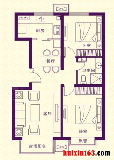 ![]() 东方名苑-98平米二居室现代简约效果图- 平面图